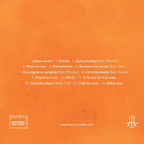 Meak (prononcez « Mik ») est le nom de scène de ce rappeur-compositeur de la région parisienne. Depuis ses 16 ans, le jeune artiste d’origine malgache crée ses propres instrus et y pose ses rimes et jeux de mots bien tissés. Son style est un doux mélange de hip-hop, jazz, RnB, soul.