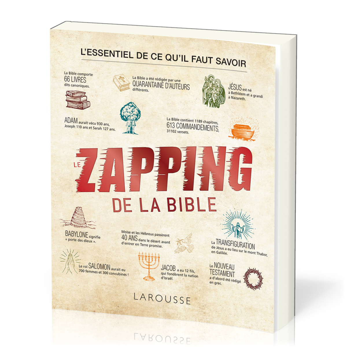 C’est à toutes ces questions, et à bien d’autres, que le Zapping de la Bible répond. De la Torah aux écrits des apôtres, d’Adam à Jésus, du Déluge à l’Ascension en passant par le jugement de Salomon et la trahison de Judas, il décrypte et analyse les plus grands épisodes bibliques de façon claire et originale. Il nous conte le destin d’exception d’hommes, de femmes dont les passions, les souffrances, les histoires d’amour, d’orgueil, de fidélités et d’espoir ont façonné notre culture et donné sens au monde. Un éclairage essentiel sur un texte fondateur à la source de la civilisation occidentale.